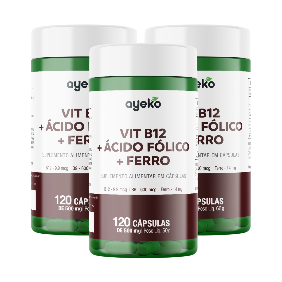 Vitamina B12 + Ácido Fólico + Ferro 120 Cápsulas - Ayeko