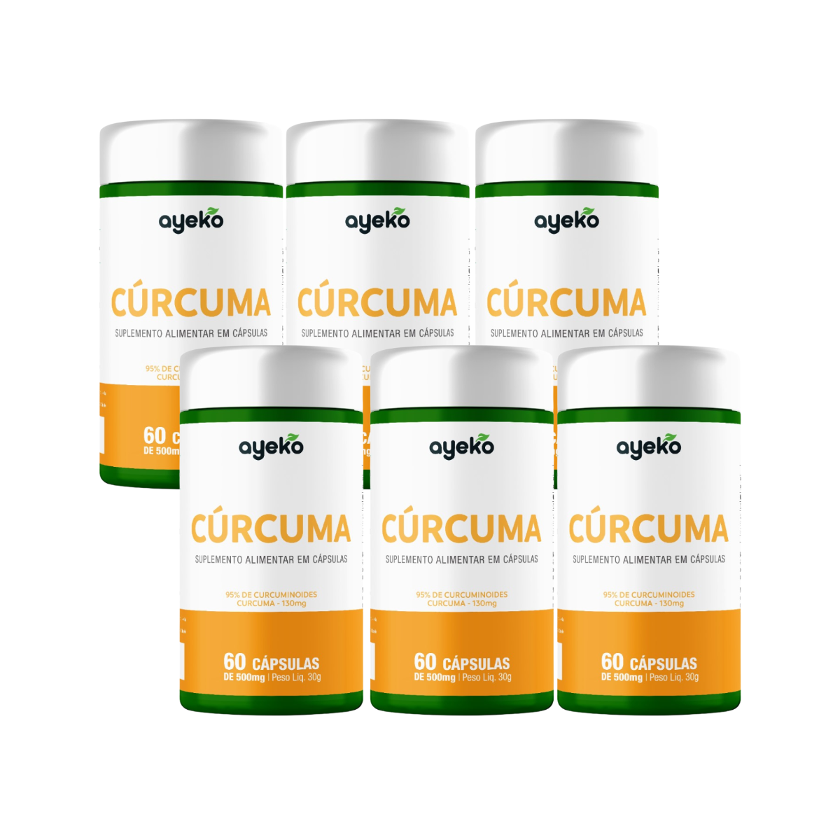 6 frasco com 60 cápsulas de Cúrcuma / Curcumina – Ayeko