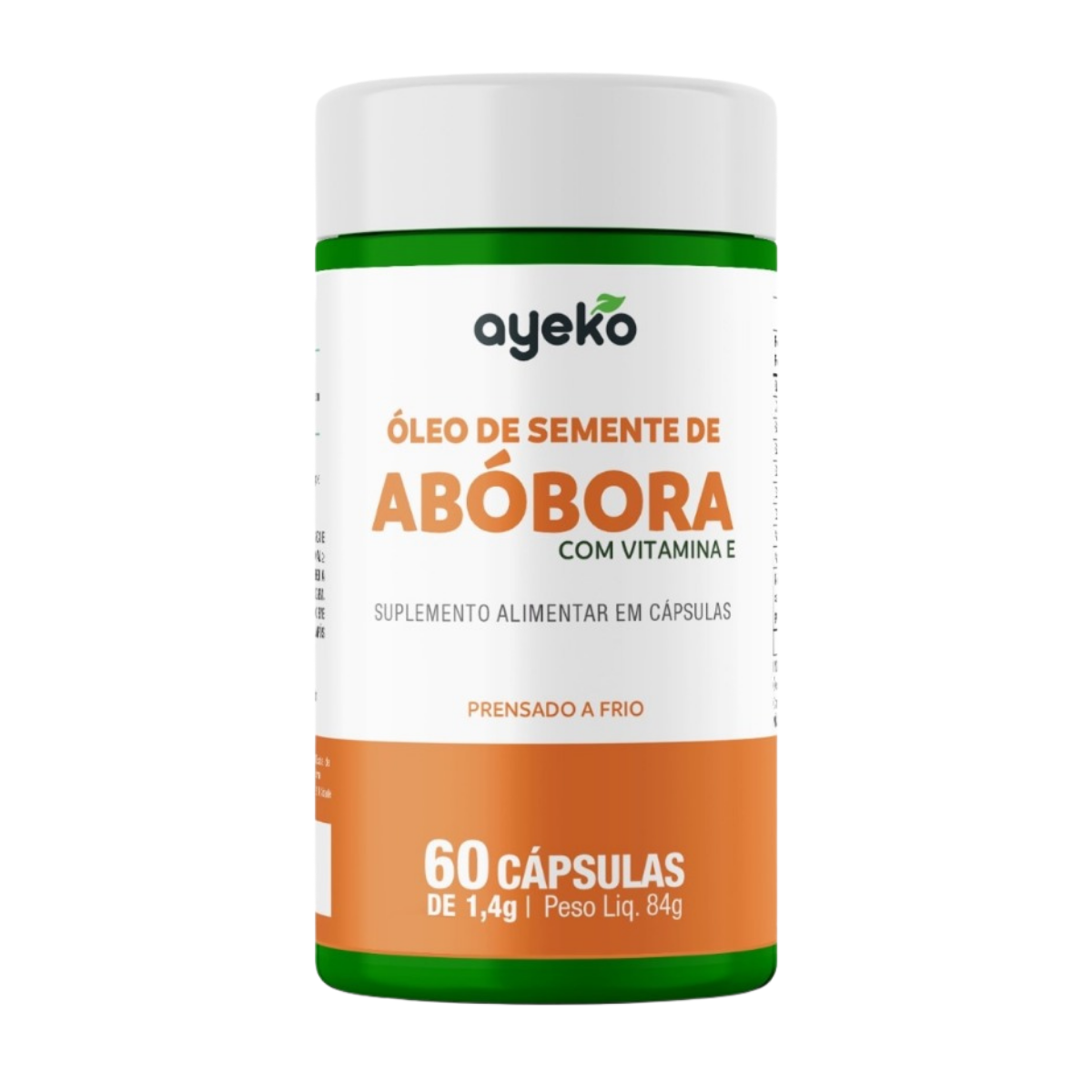 O Óleo de Semente de Abóbora Ayeko é um suplemento alimentar produzido por prensagem a frio, processo que mantém a qualidade e as propriedades naturais do óleo.